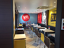 ドライブスルー、店舗客席、店内の注文口、商品お渡し口の変更などを行っております。