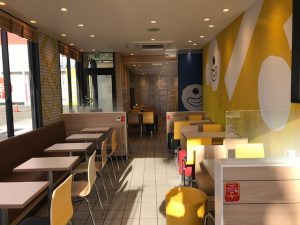 カウンターではデジタルメニューボードやディアルポイントサービスが導入されています。