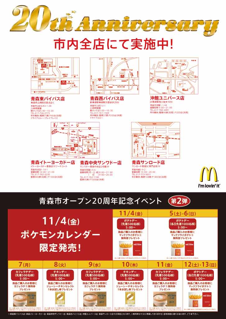 1991年 この津軽の地にマクドナルドが誕生し(青森東バイパス店&弘前堅田店)それから早20年が経ちました。
