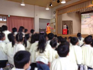 「もったいない」を合言葉に、エネルギーの無駄遣いをなくすことや、「いただきます」に【ありがとう】の気持ちを込めて挨拶することを、ドナルドと楽しく学ぶことができました。