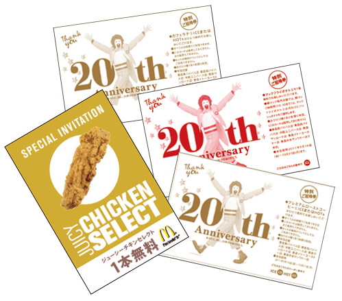 日頃のご愛顧と感謝の気持ちを込めて、マクドナルド20周年アニバーサリー(第1弾)を実施します!