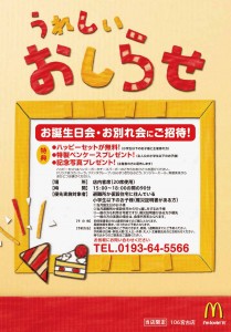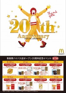 マクドナルド『20周年アニバーサリー(第1弾)』実施!(青森県青森市・弘前市)